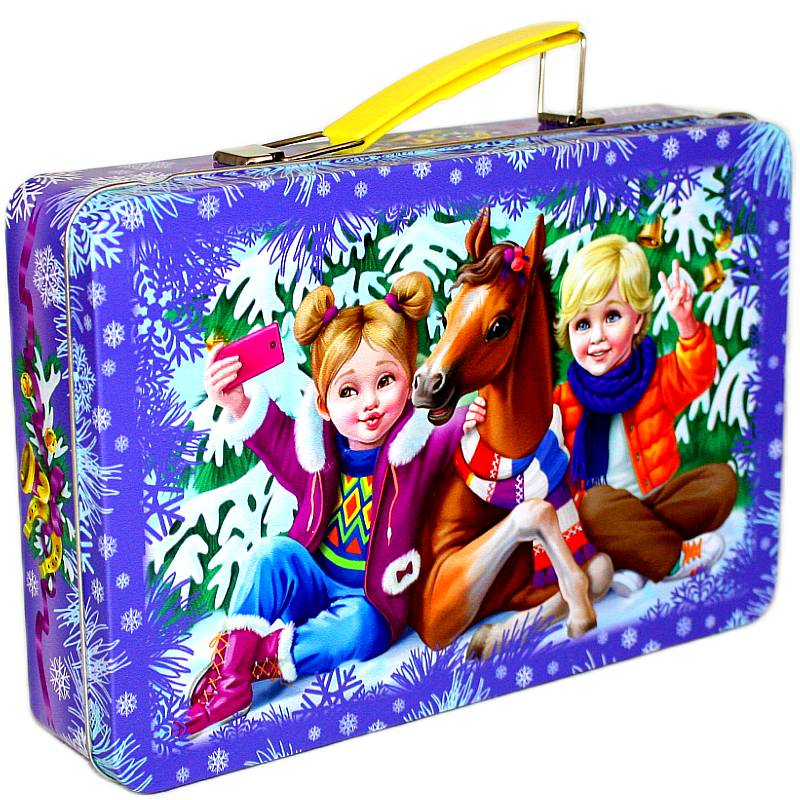 Сладкий подарок на Новый Год в жестяной упаковке весом 600 грамм